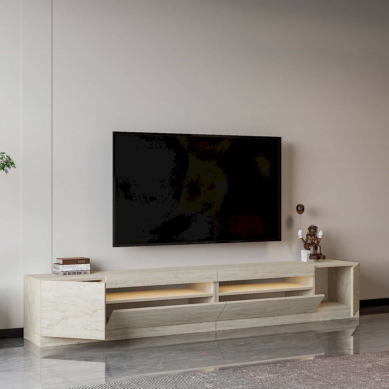 Arya T008 LED Işıklı TV Sehpası Seti, modern ve minimalist tasarımıyla oturma odanıza şıklık katar. 4 kapaklı geniş depolama alanı ve LED aydınlatması ile hem estetik hem de işlevsel bir çözüm sunar. Dayanıklı malzeme yapısı sayesinde uzun ömürlü kullanım sağlar. Farklı dekorasyon stillerine uyum sağlayabilmesi için Orma Mermer/Beyaz, Beyaz, Ahşap Siyah ve Traverten olmak üzere 4 renk seçeneği bulunur.