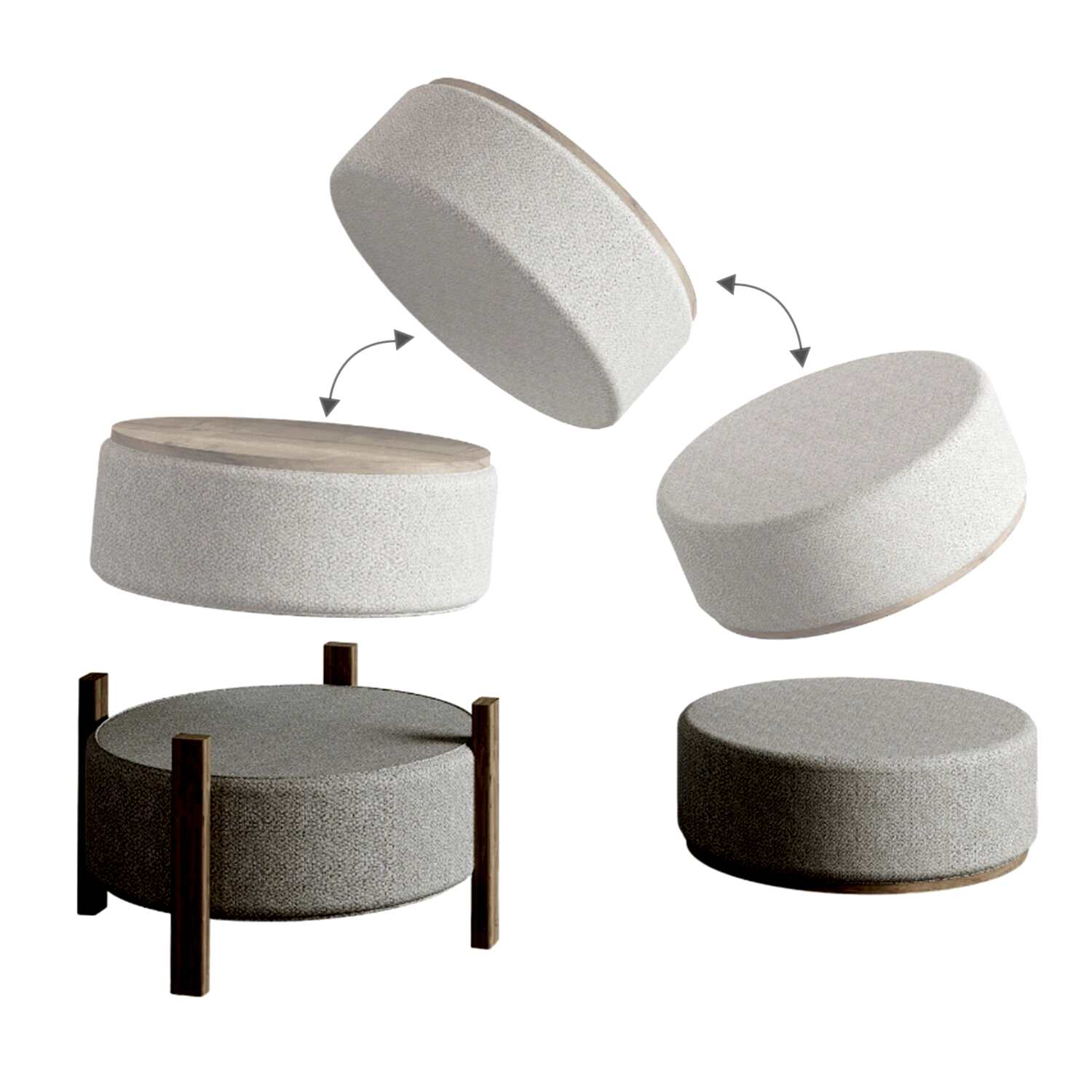 Clone Puf; salon, oturma odası, genç odası, balkon, teras ve ofis gibi farklı alanlarda hem oturma hem servis çözümü sunan çok yönlü bir mobilyadır.