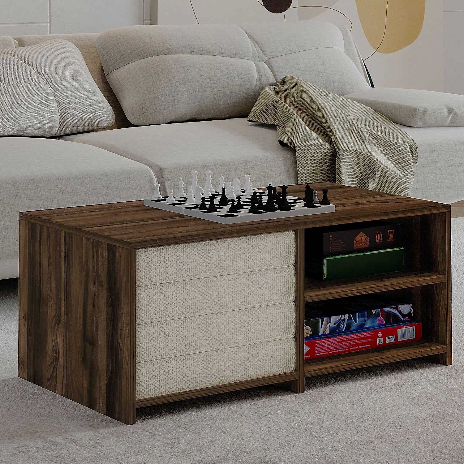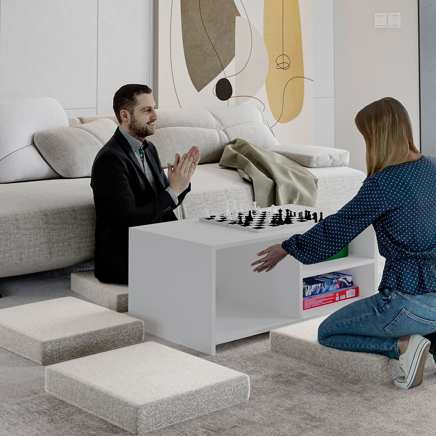 Modern yaşam alanları için hem fonksiyonel hem de eğlenceli bir çözüm sunan Gord Minderli Orta Sehpa, oturma minderleriyle birlikte gelen özel tasarımı sayesinde hem oyun masası hem de dinlenme alanı olarak kullanılabilir. Açık raflı yapısı kitap, dergi ve oyun kutuları için ideal saklama alanı sunarken, kompakt ölçüleriyle salon, genç odası ve ofis gibi farklı mekanlara kolayca uyum sağlar.