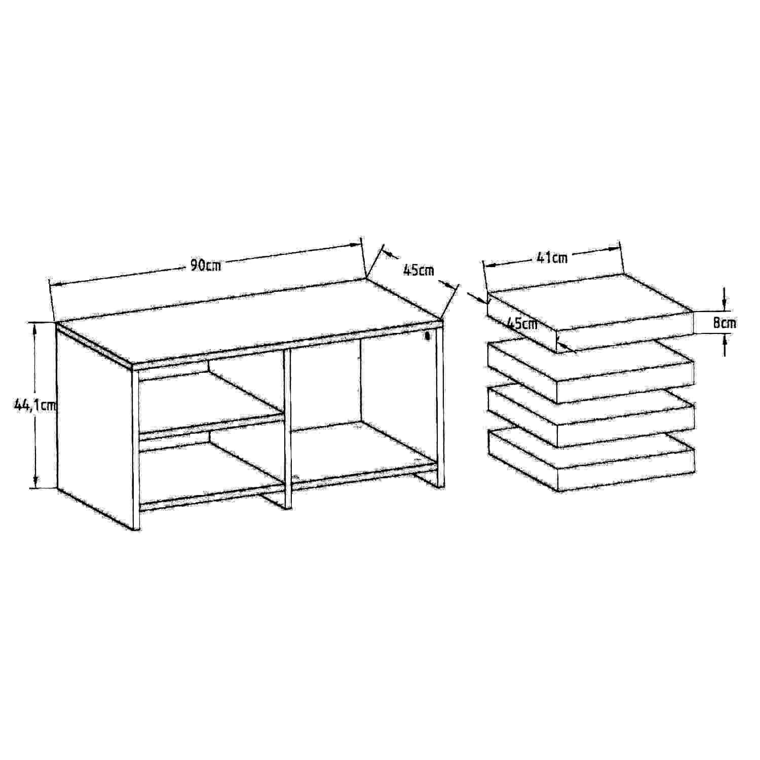 - Sehpa gövdesi: 18 mm E1 kalite melamin kaplı yonga levha (çevre dostu ve dayanıklı)