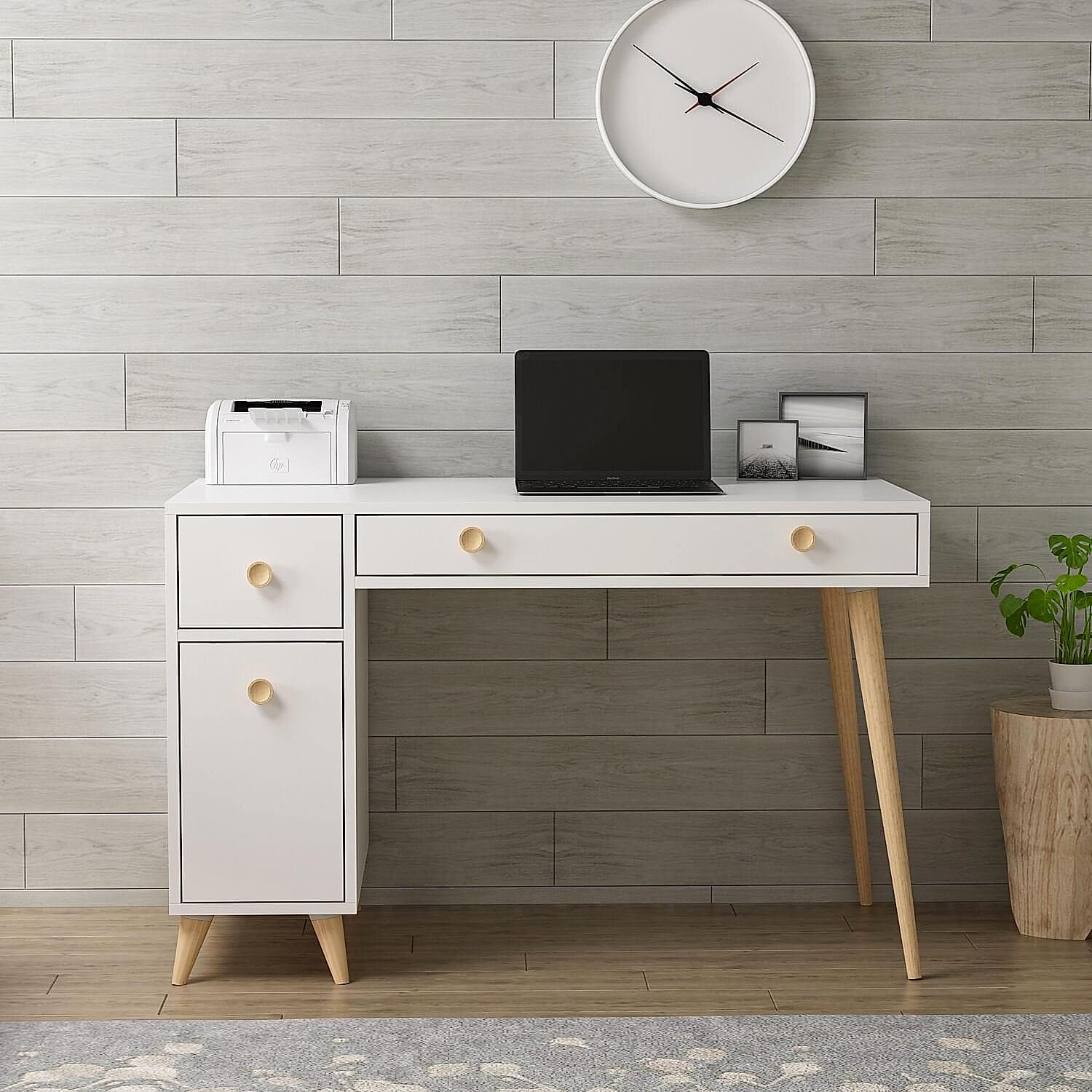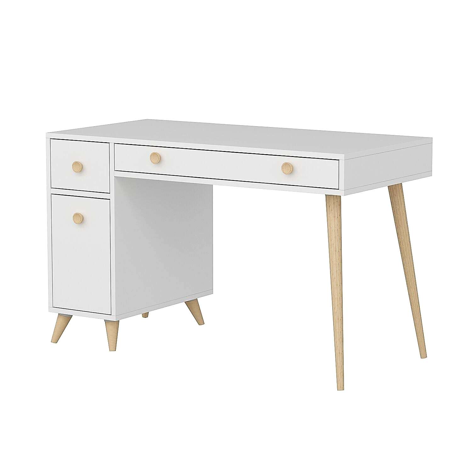 Modern İskandinav tarzını yansıtan ahşap ayaklar, estetik görünümle birlikte sağlamlık da sunar. Beyaz yüzeyi sayesinde her dekorasyon tarzına uyum sağlar. Dayanıklı suntalam malzemeden üretilmiş olup uzun ömürlü kullanım imkanı tanır.
