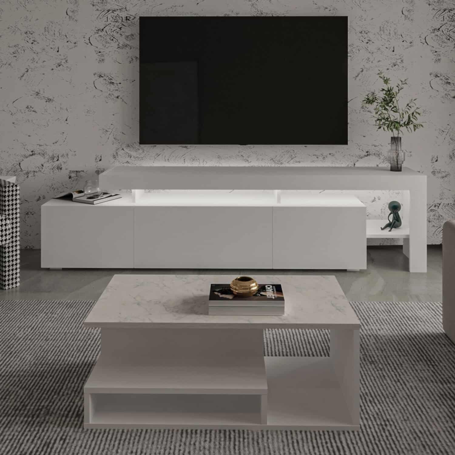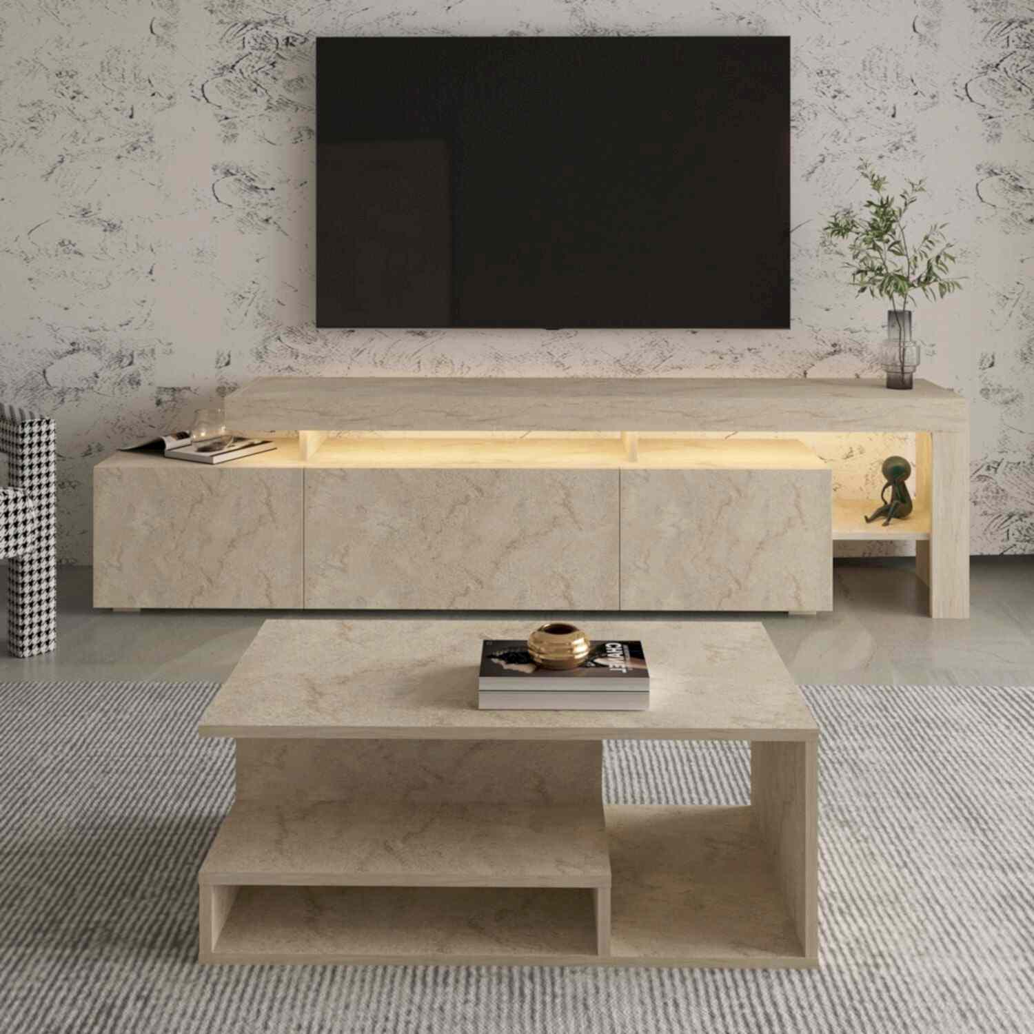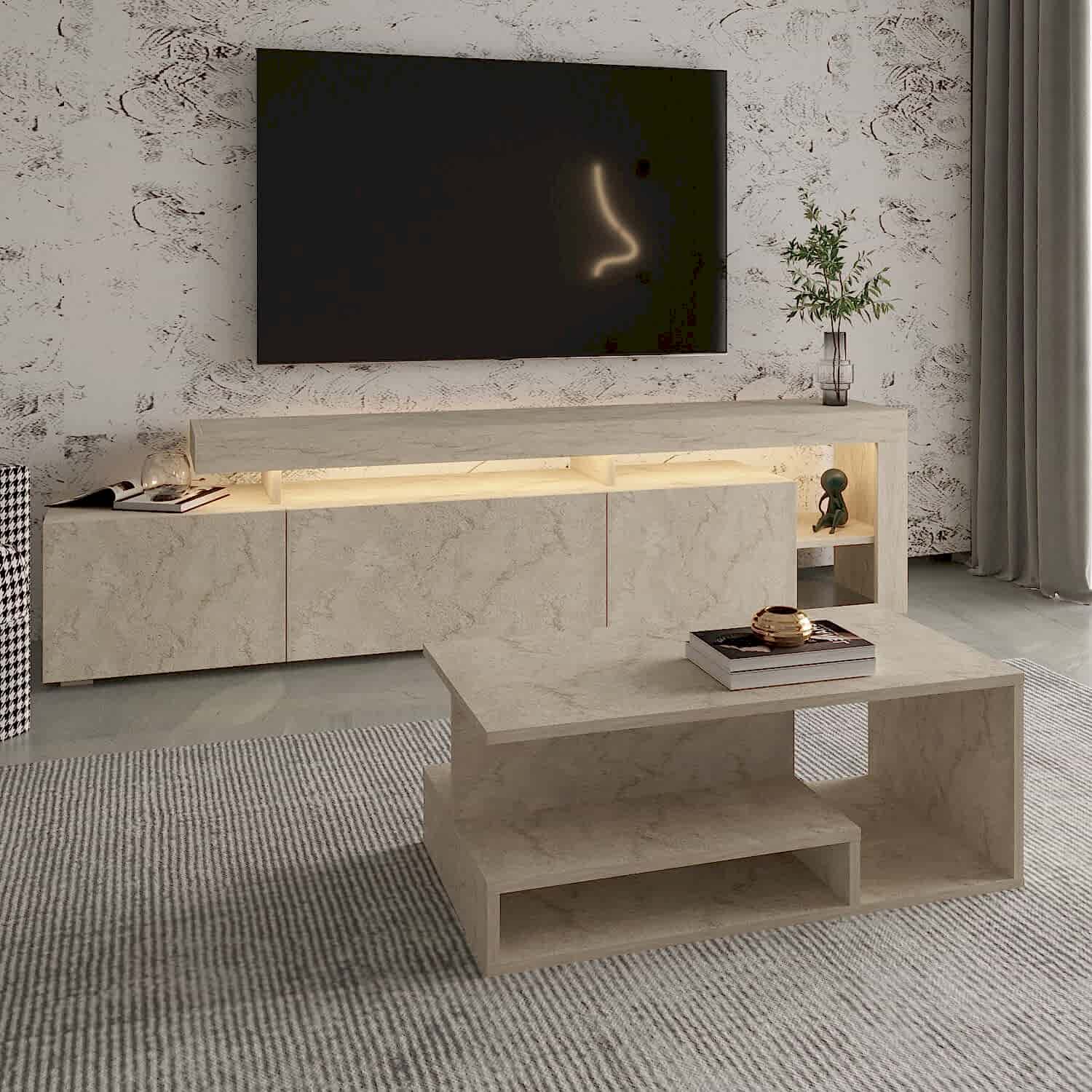 Salonunuza modern bir dokunuş katacak Beliz LED Işıklı TV Sehpası ve Vera Orta Sehpa Set, şık tasarımı ve fonksiyonel yapısıyla öne çıkıyor.