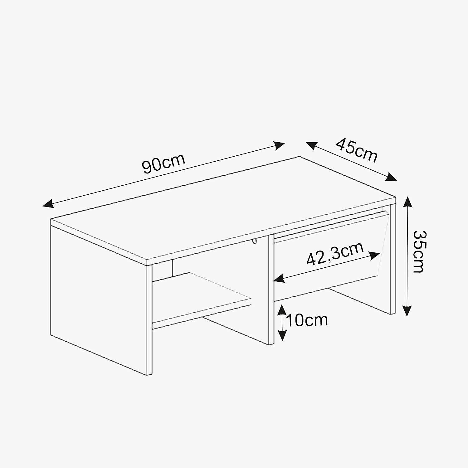 Laris 90 cm Kapaklı Orta Sehpa, modern yaşam alanları için hem estetik hem de işlevsel bir çözüm sunar. Minimalist tasarımı, taş dokulu yüzeyi ve kapaklı raf bölmesiyle salon dekorasyonuna zarif bir dokunuş katar. Ceviz, traverten, beyaz, antrasit ve siyah olmak üzere 5 farklı renk seçeneğiyle her tarza uyum sağlar.