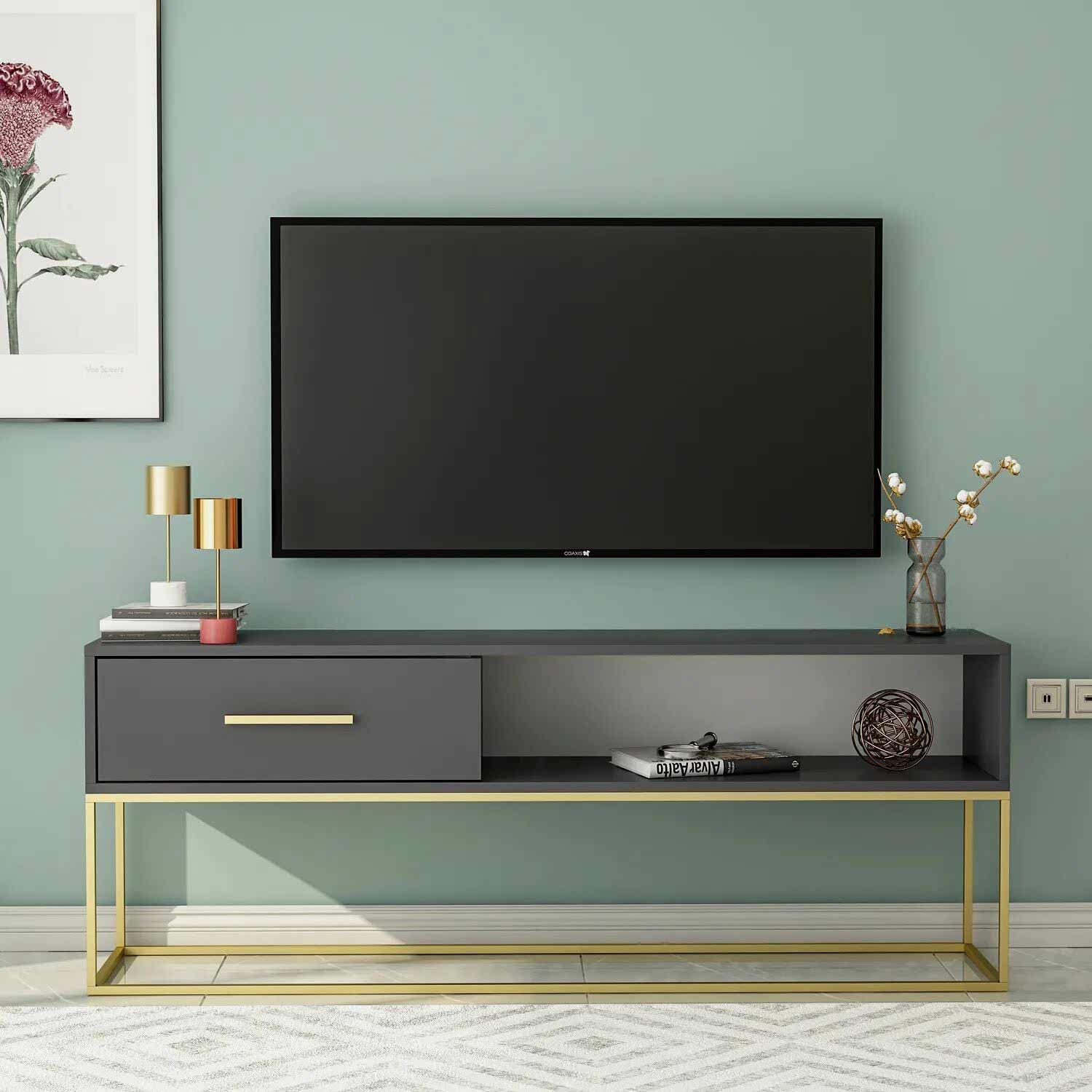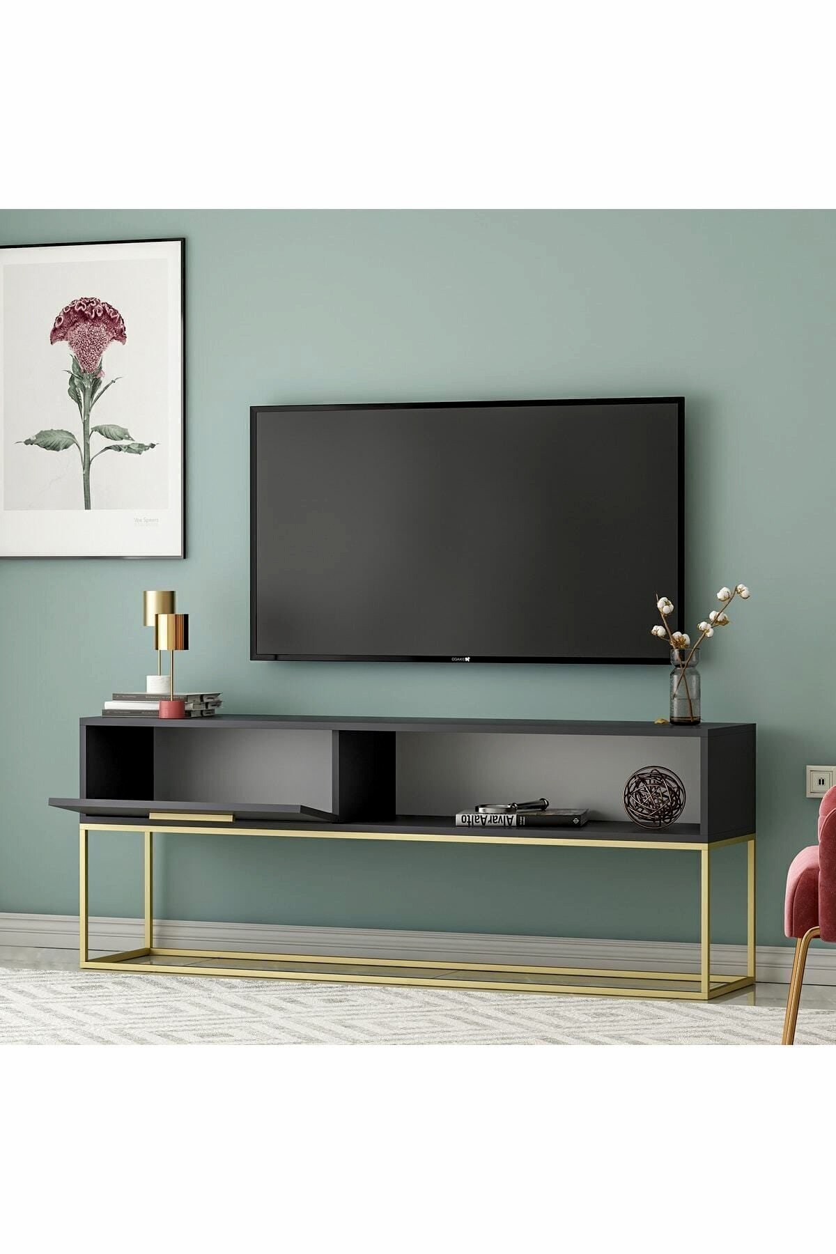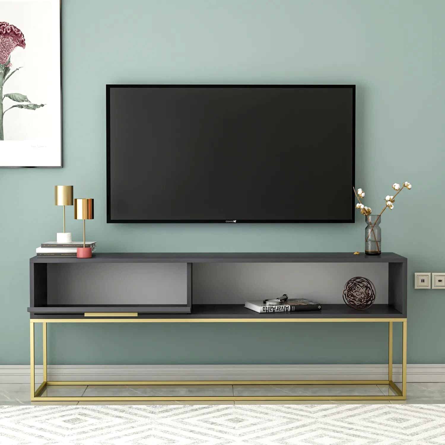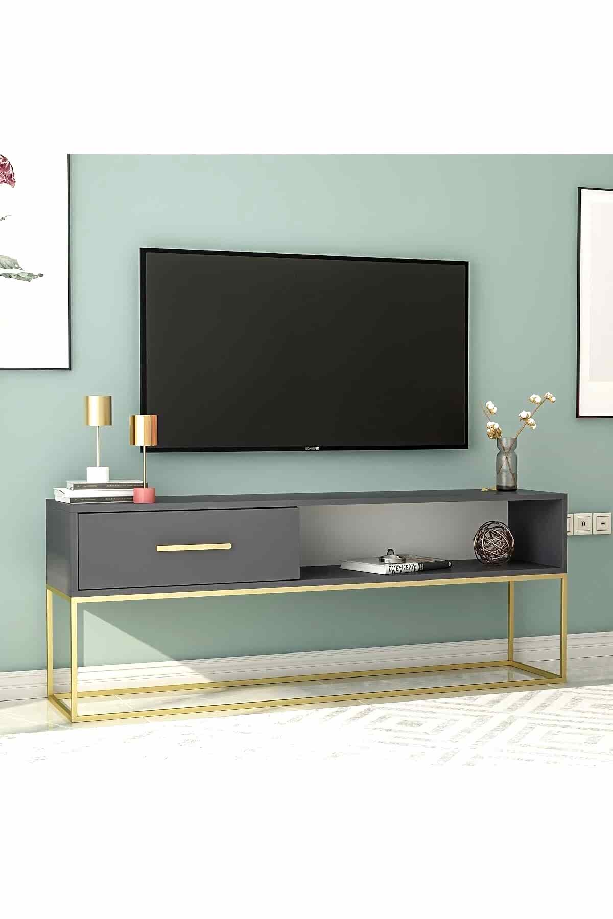 Gold Ayaklı Modern TV Sehpası, şıklığı ve işlevselliği bir araya getiren özel bir tasarımdır. Altın metal ayaklarıyla öne çıkan bu ünitenin geniş depolama alanı ve sade formu, modern ve zarif dekorasyon sevenler için idealdir.