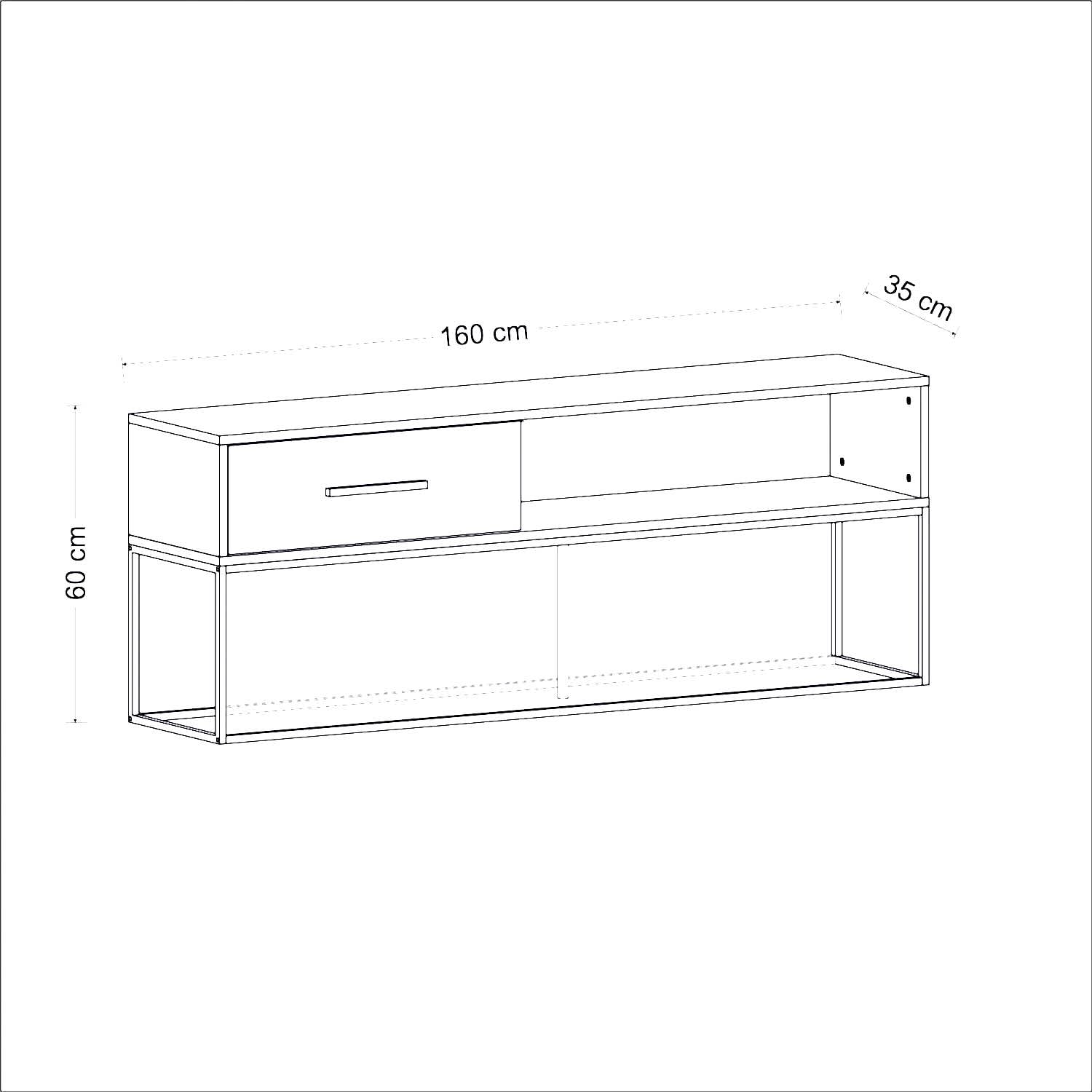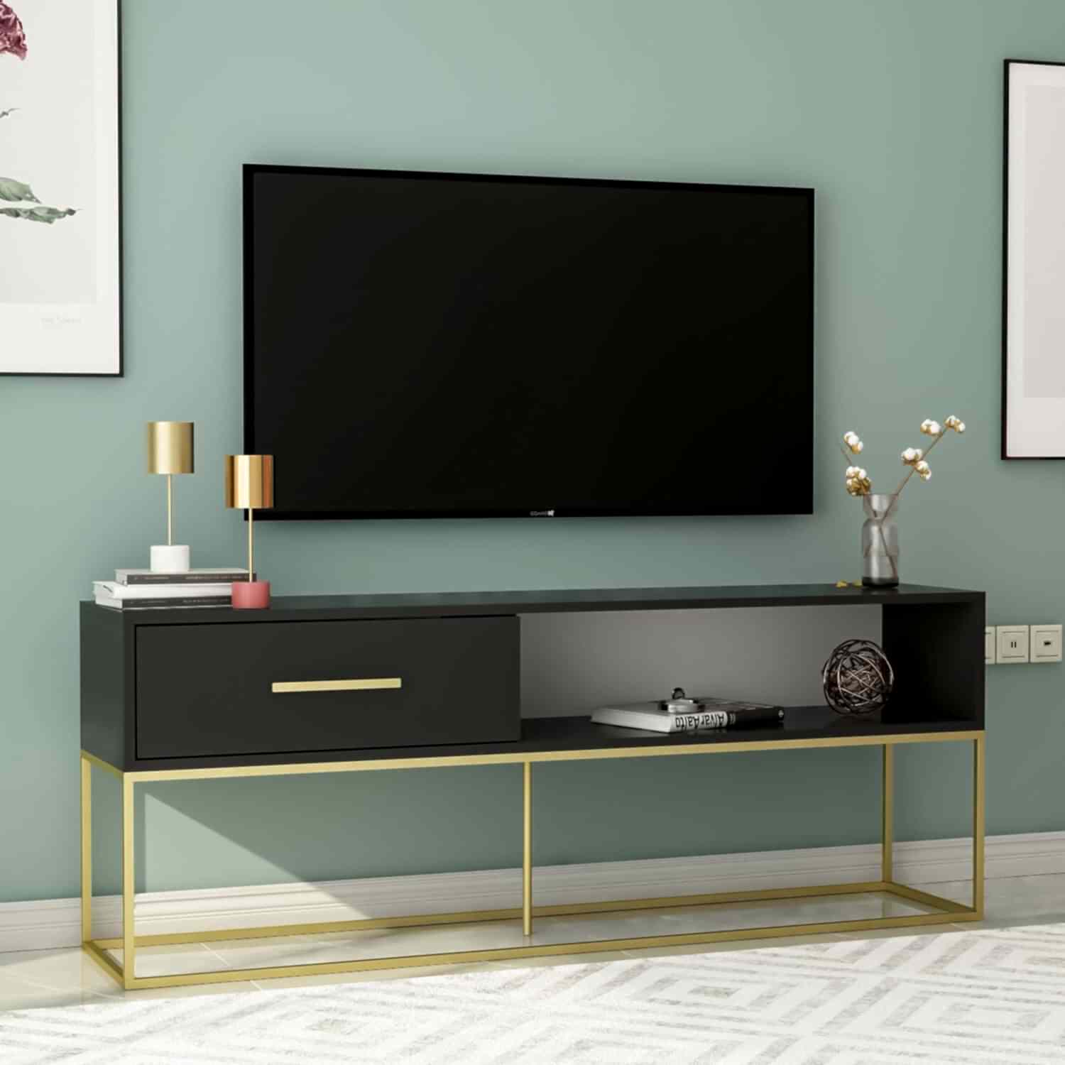 Ürünün üst kısmı 55-65 inç arası TV'ler için uygundur. Alt raf ve kapaklı bölme; kitap, medya oynatıcı, kumanda ve dekoratif eşyalar için ideal bir düzen sunar.