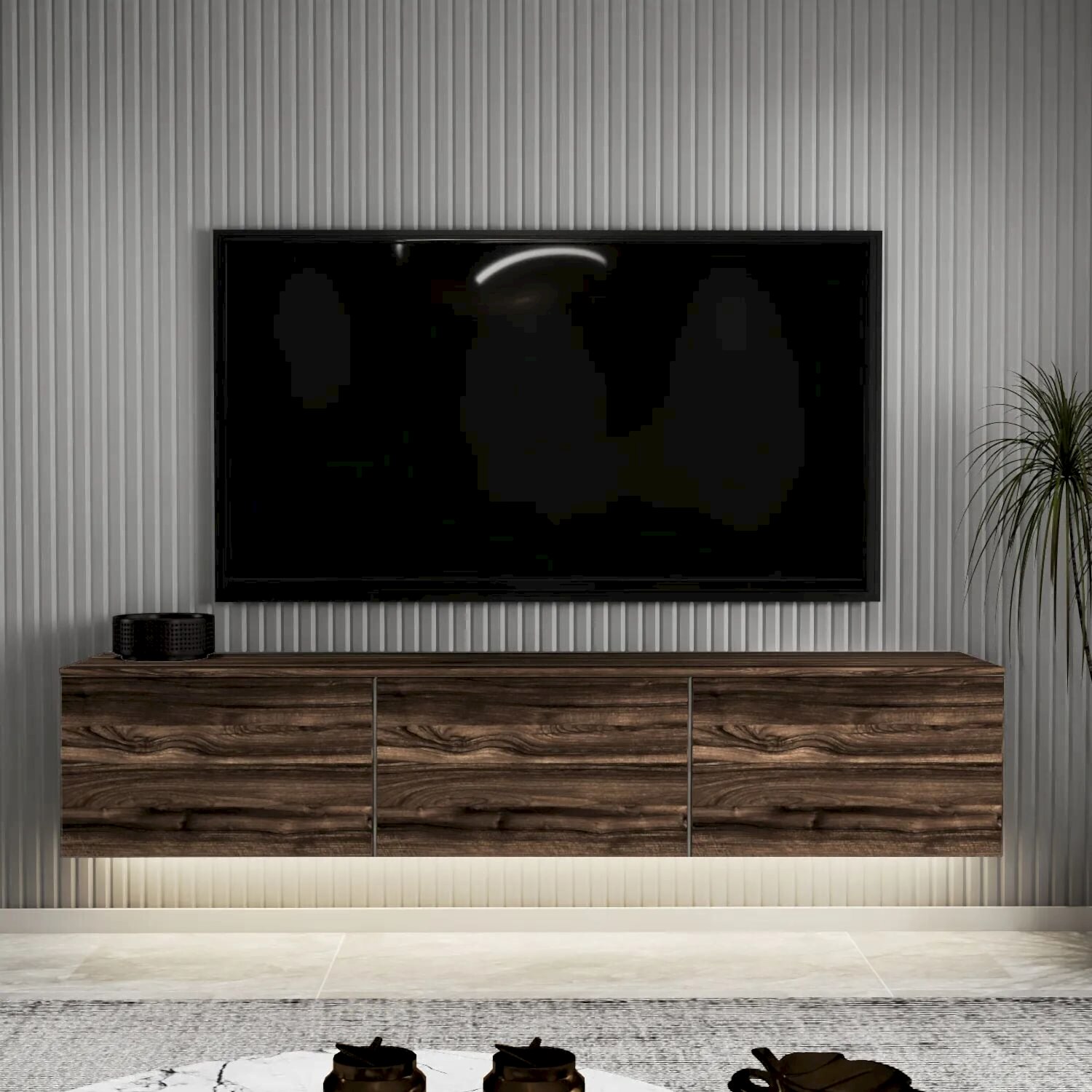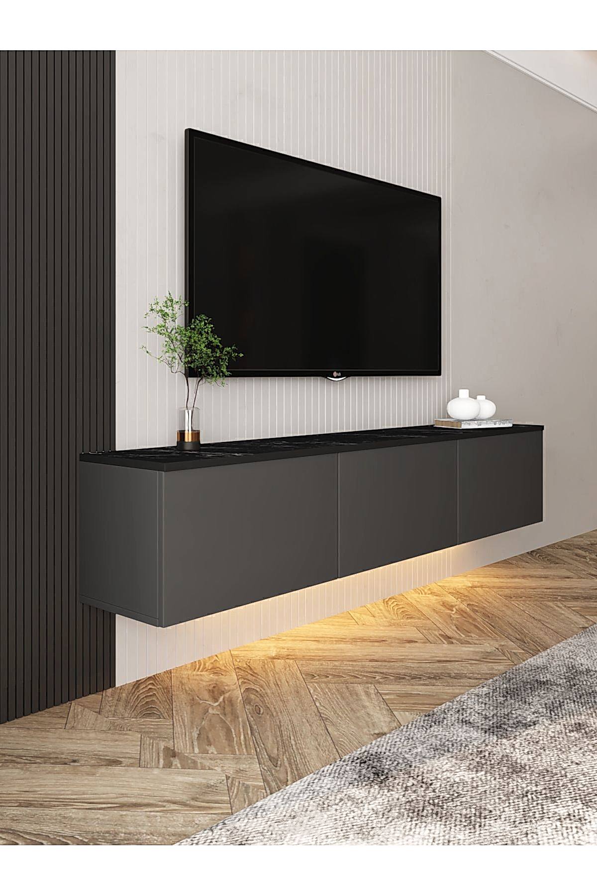 Modern çizgisi ve yenilikçi yapısıyla dikkat çeken Neon LED Işıklı Duvara Monte TV Sehpası, salonunuza sade ve sofistike bir görünüm kazandırır. Askılı yapısı sayesinde zeminde temassız bir düzen oluşturur ve LED aydınlatma detayı ile şık bir ambiyans sunar.