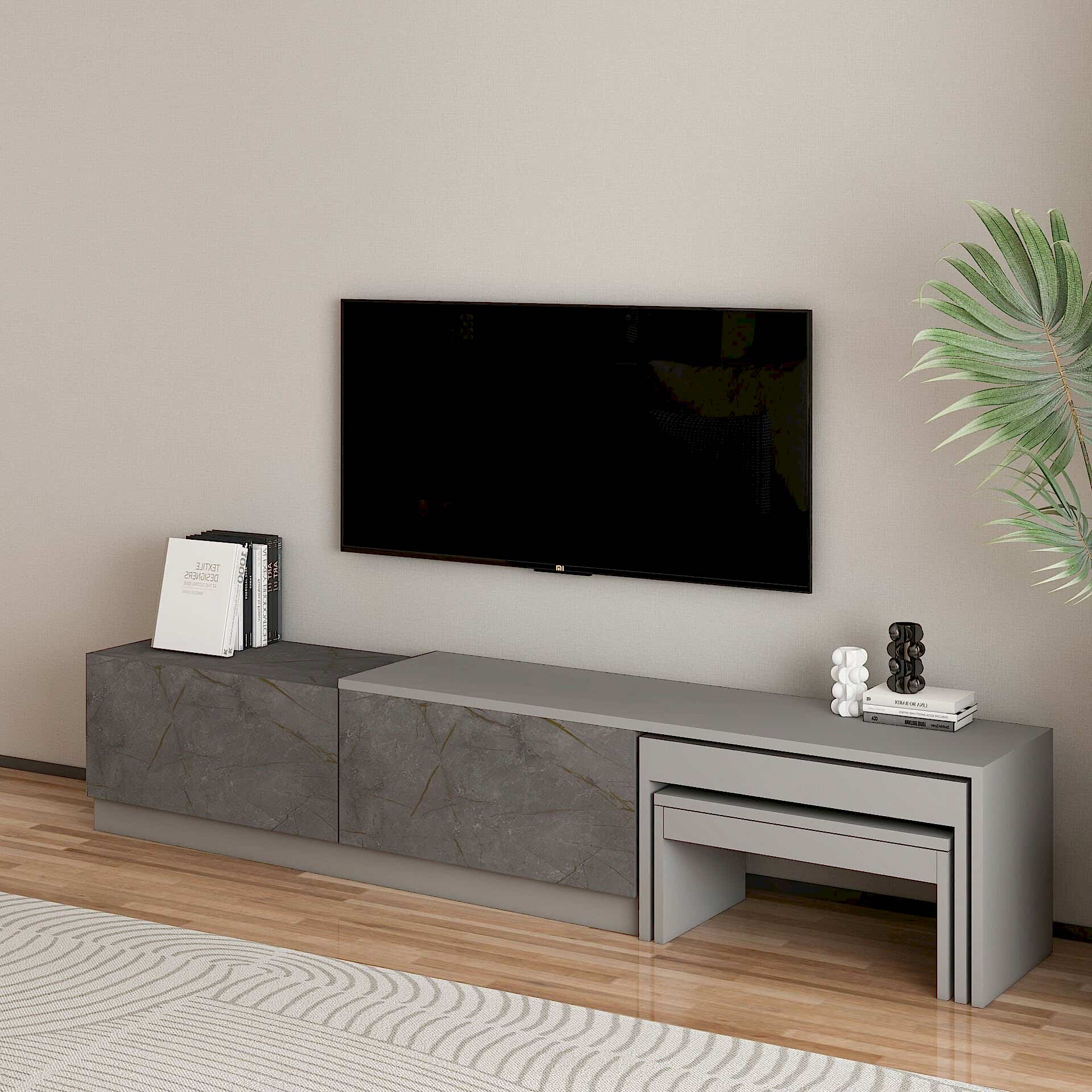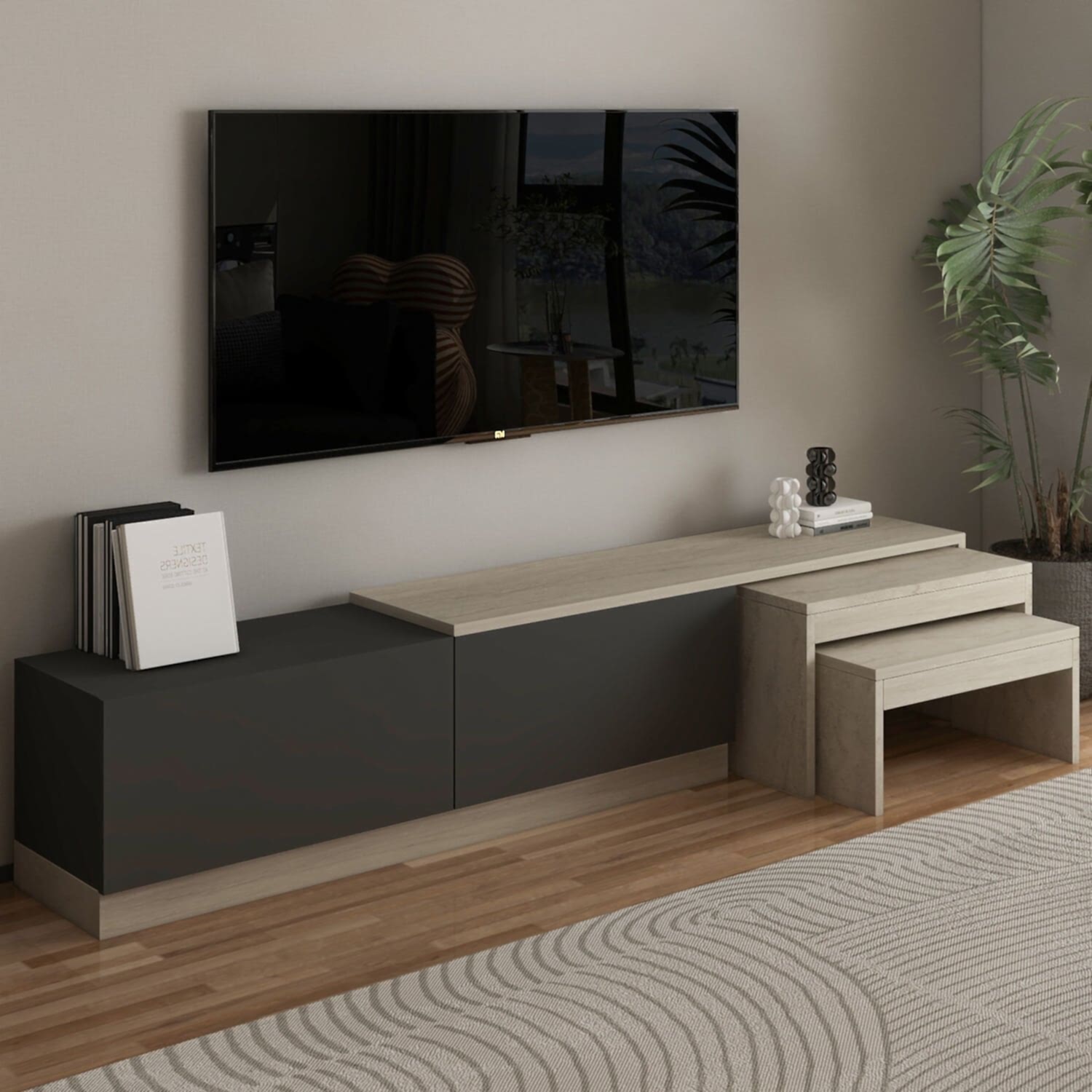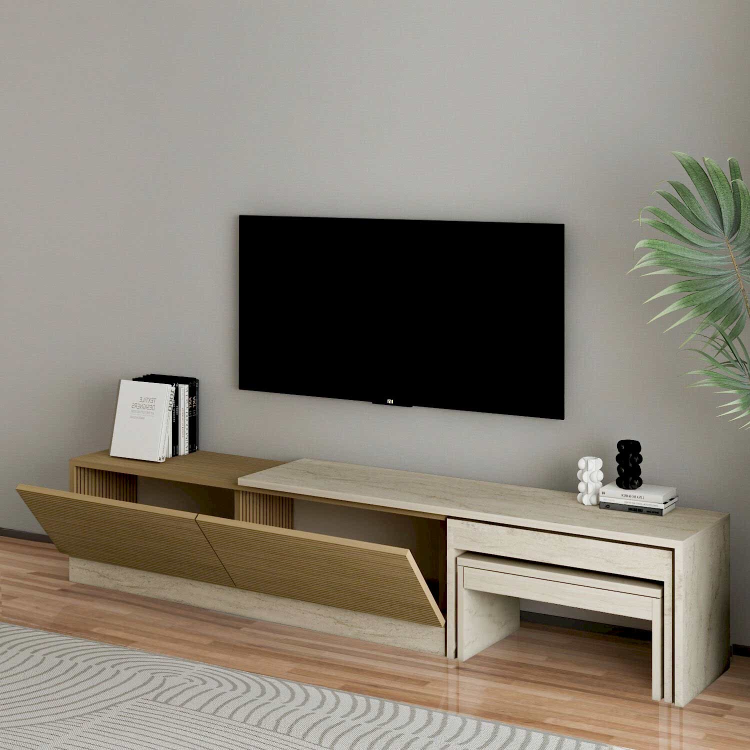 Nest TV Sehpası, modern tasarımı ve fonksiyonel özellikleriyle yaşam alanlarına şıklık ve düzen kazandıran çok amaçlı bir mobilya çözümüdür. İkili zigon sehpa özelliği sayesinde hem dekoratif hem de pratik kullanım sunar. 2 kapaklı depolama alanı ile oturma odasında düzeni korumanıza yardımcı olur.