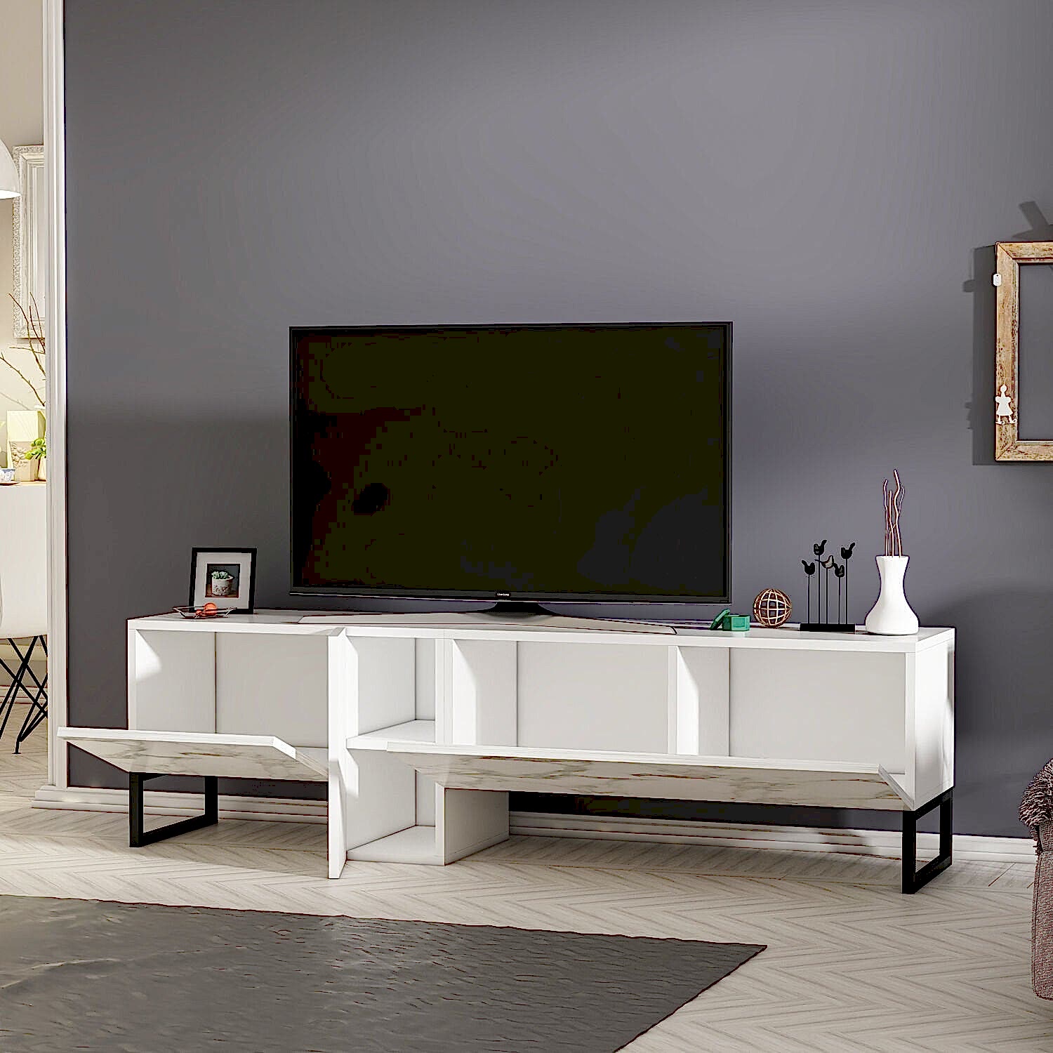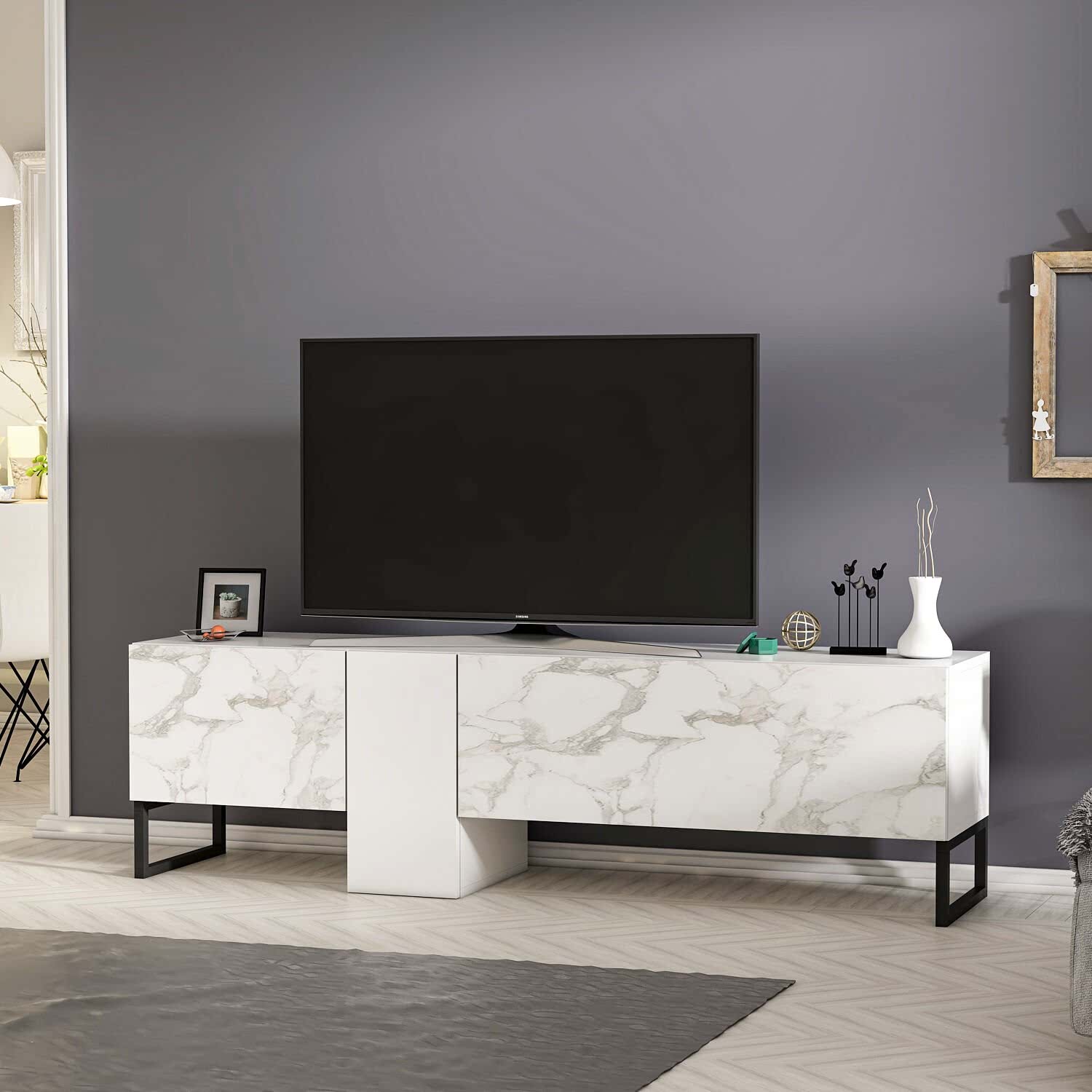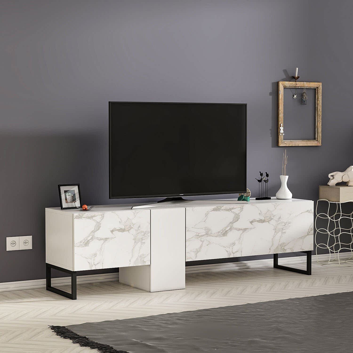 Saga T0016 TV sehpası, modern çizgileri ve fonksiyonel yapısıyla salonlarınıza şıklık katıyor. Antrasit & Safir Meşe, Beyaz & Beyaz Mermer gibi dikkat çekici renk seçenekleriyle her dekorasyon stiline kolayca uyum sağlar.
